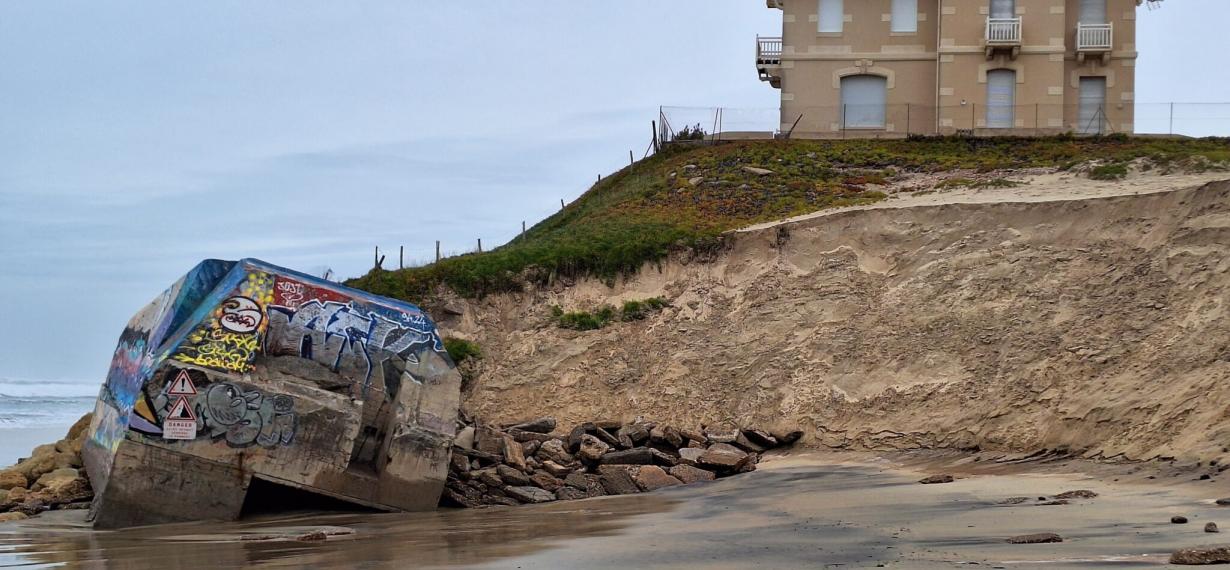 Biscarrosse a subi des reculs spectaculaires de sa falaise (jusqu’à -25 mètres au nord). Les zones reprofilées et végétalisées l’an dernier ont mieux résisté, confirmant l’efficacité des actions engagées. Ce cas illustre l’urgence climatique, mais aussi l’importance et l'efficacité des SLGBC et des projets d'Aménagement durable pour anticiper et gérer les risques, en combinant rechargements mécaniques et repli stratégique des enjeux, comme l'illustre le secteur nord du front de mer de Biscarrosse.